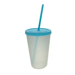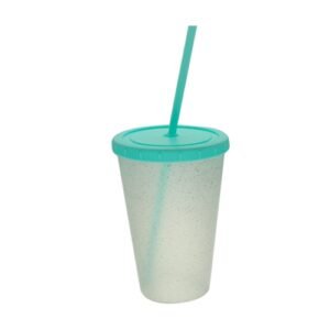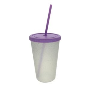 Colores disponibles: Los vasos son todos translúcidos con glitter. Las tapas y sorbete van en tono pastel, Lila, Rosa, Verde y Celeste.